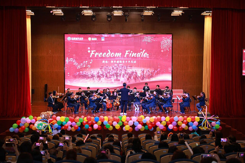 The opening of the concert was especially exciting - the Xinhua International Youth Orchestra played a medley of Radetzky March and the magical soundtrack from Harry Potter. This performance, called the "Finale of Freedom", immediately lifted the children's spirits. To play these two classic pieces well, the kids not only studied every note in the score, but also took the initiative to learn about the historical and cultural stories behind them; during rehearsals, they cooperated with each other and supported one another, infusing new vitality into these well-known melodies. This enthusiasm for inquiry and eagerness to learn is the best reflection of the IB attributes of "being inquirers" and "being knowledgeable". Later, children from all grades took turns on stage, each bringing their own highlights. The first-graders danced to Banana Chacha, full of childlike fun as they hopped and skipped. They held hands during the performance, with tacit understanding in their eyes, hiding the "being caring" team spirit in every move; the second-graders expressed their feelings through The Gifts the World Gave Me, their singing full of appreciation and gratitude for different cultures, showing what "being open-minded" looks like; the third-grade's Cute Swing was full of energy, with the children jumping around in high spirits, a vivid portrayal of "being balanced"; the fourth-grade's As Light as Dust was more delicate, with deep emotions hidden in the singing, allowing people to feel the depth of their "being thinkers".