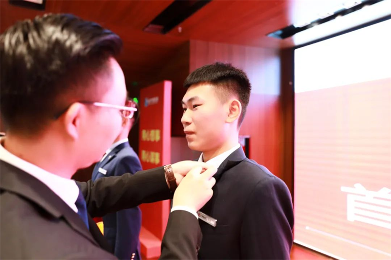 华地好生活集团总经理罗星星为优秀学员佩戴郁金香徽章