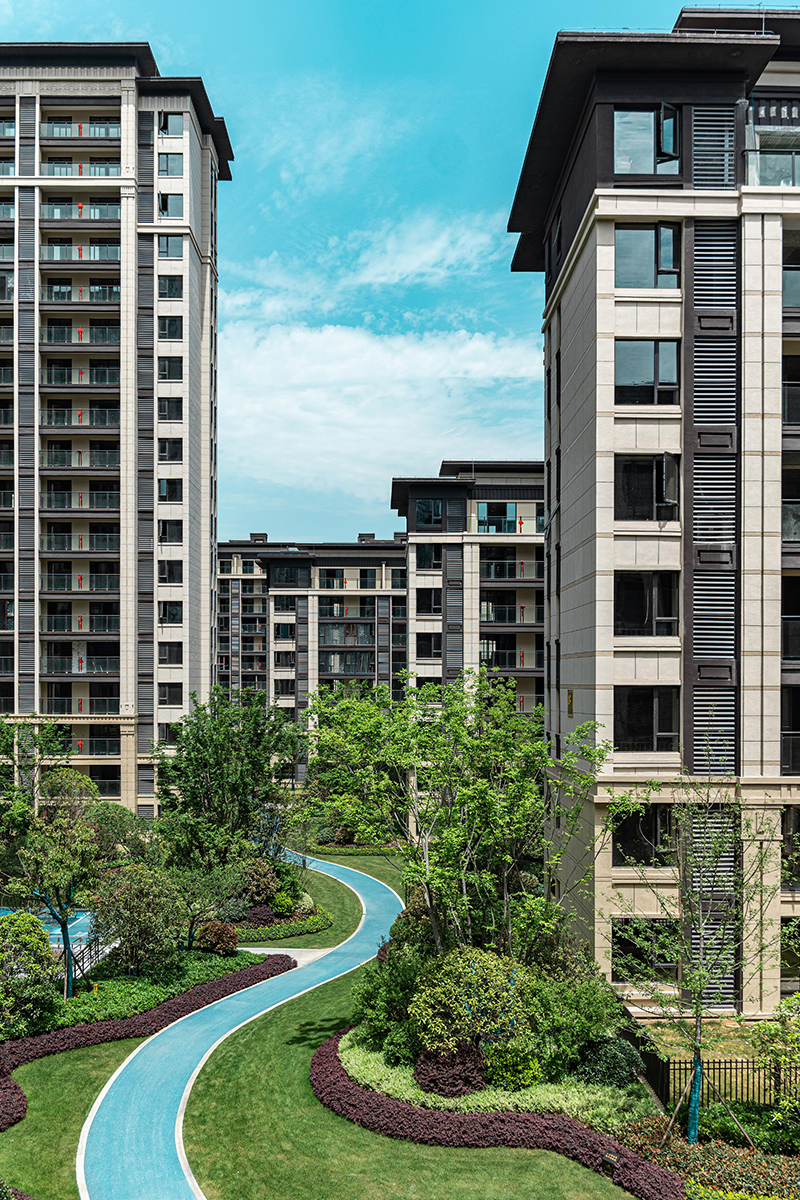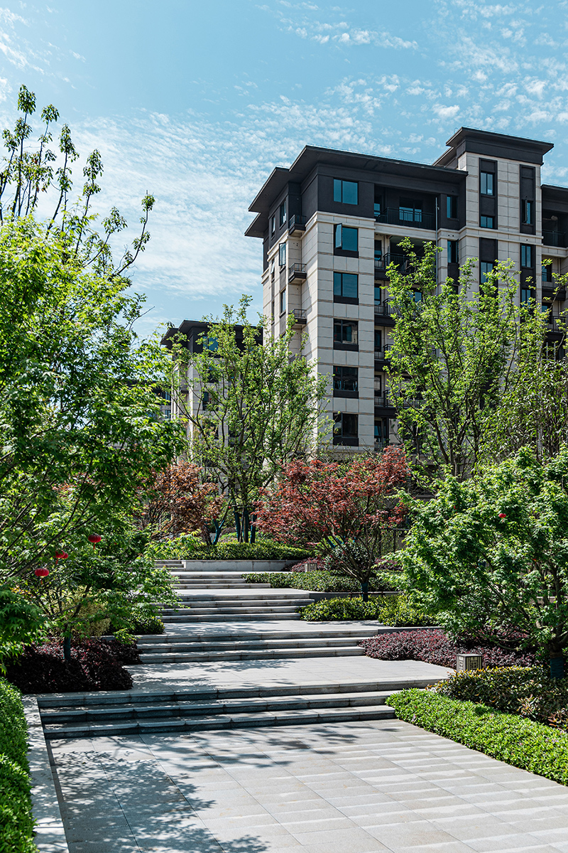 华地坚持以境造园,绘就诗意人生。景观中轴由北至南,一脉贯穿,中轴线上汇聚多种珍贵树种,呈四季斑斓,花香满径,树影错落,犹如一幅展开的画卷,人于画中游。