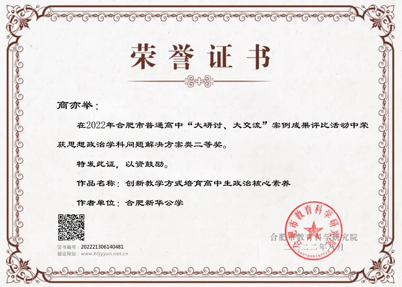 除了学校内部的表彰以外,新华公学多位教师荣获合肥市奖项,这更是对我校教师教学水平及师德师风的肯定与赞扬。
