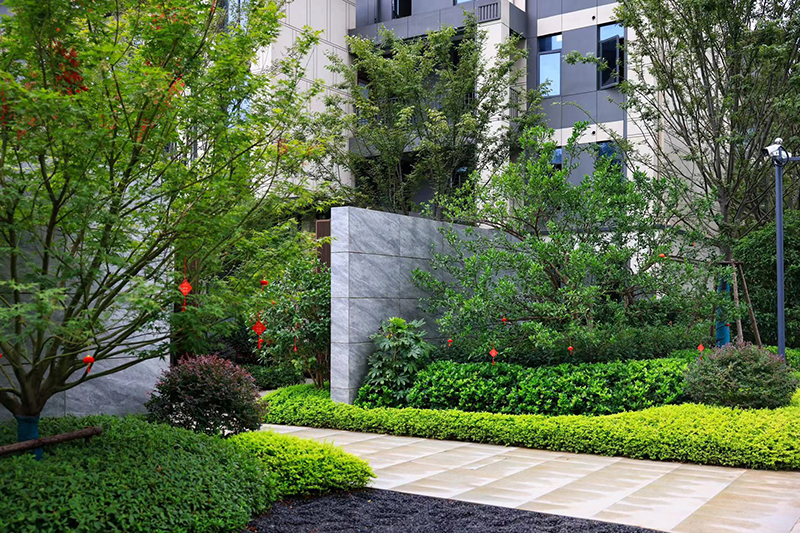 长青乔木、应时花草一起组成,春花、夏荫、秋声、冬藏的画境开启归家漫时光,漫步其中,移步异景如画卷层层铺展。