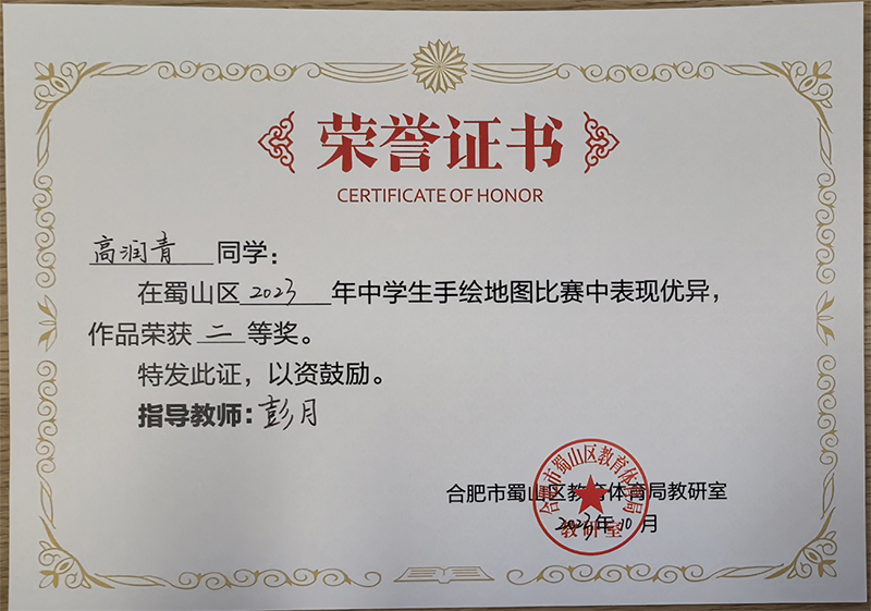 为了落实新课程标准,提升学生地理学科素养,增强学生的版图意识,在国庆之际,蜀山区举办了地理学科2023年蜀山去中学生手绘地图比赛。新华公学积极响应,参加了本次比赛并取得了优异成绩。